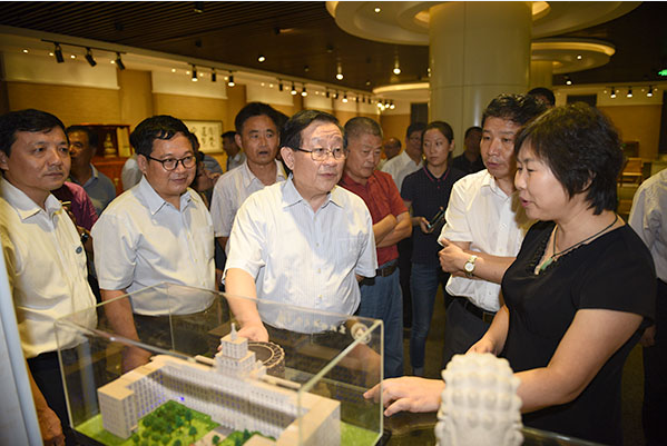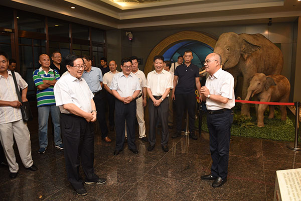 在调研期间,万钢多次在展品前驻足:“这是硅化木吧?这可是要很长的时间才能形成的。”“这里收藏的红松松塔标本不是最大的,我曾经见过更大的红松果实。”在华南虎骨骼标本前,万钢说:“你们可以将虎的骨骼做一个剖面展示,它的骨骼不仅密度小、重量轻,还具有更好的强度。”走到动物展区,万钢饶有兴趣地看着其中的展品,说:“你们的展品不仅要种类全面,还应该展现食物链之间的关系。”